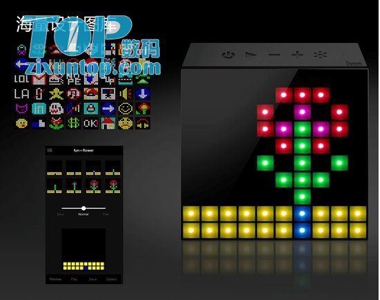 Aurabox最大的创新还在于可以利用APP实现每个LED的控制,用户可以在App上画画和制作动画,然后直接发送显示在led灯板上,这大大丰富了LED灯的玩法,尤其对于家里有小朋友和喜欢搞创作的朋友会非常有意思,点阵图形有时表达的东西比照片还更有感觉。同时这款APP还配备了海量的图库,用户可以在上面得到启示,也可以直接调用图片来表达心情。
